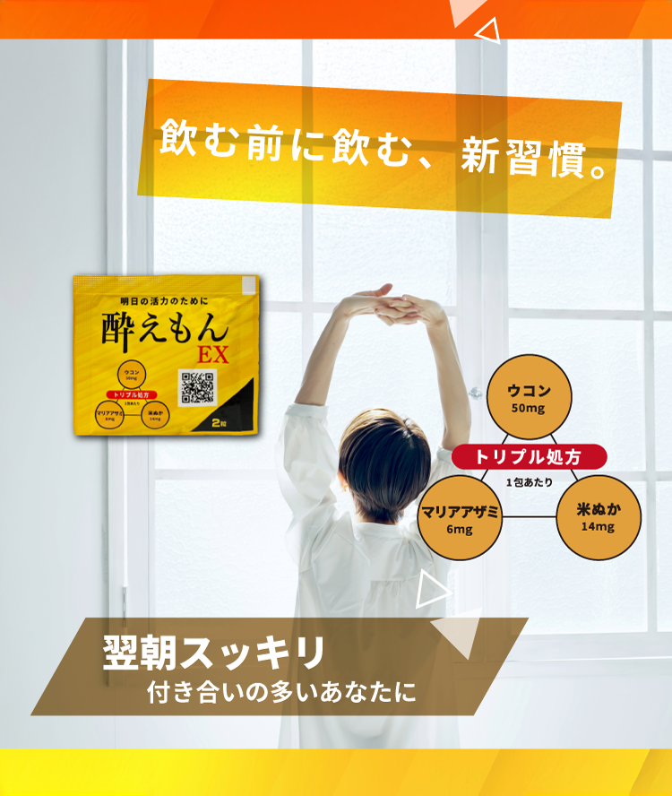 そんなあなたに。「酔えもん」で、翌朝をすっきり迎えたい方へ。